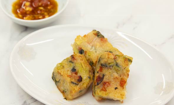 淑徳大学看護栄養学部 客員教授) - 台湾出身のひいおばあさんを想って作った、台湾の郷土料理の大根餅、ほんわか心が温かくなりました。大根餅にトマトと小松菜が入っているので、赤と緑が透けて見えてきれいです。中はモチモチ、外はカリカリに焼き上げて、トマトの酸味が効いたしょうゆダレをかけていただきます。物語があり、トマトを活かしたアイデアに富んだステキなお料理「トマトな大根餅」です。